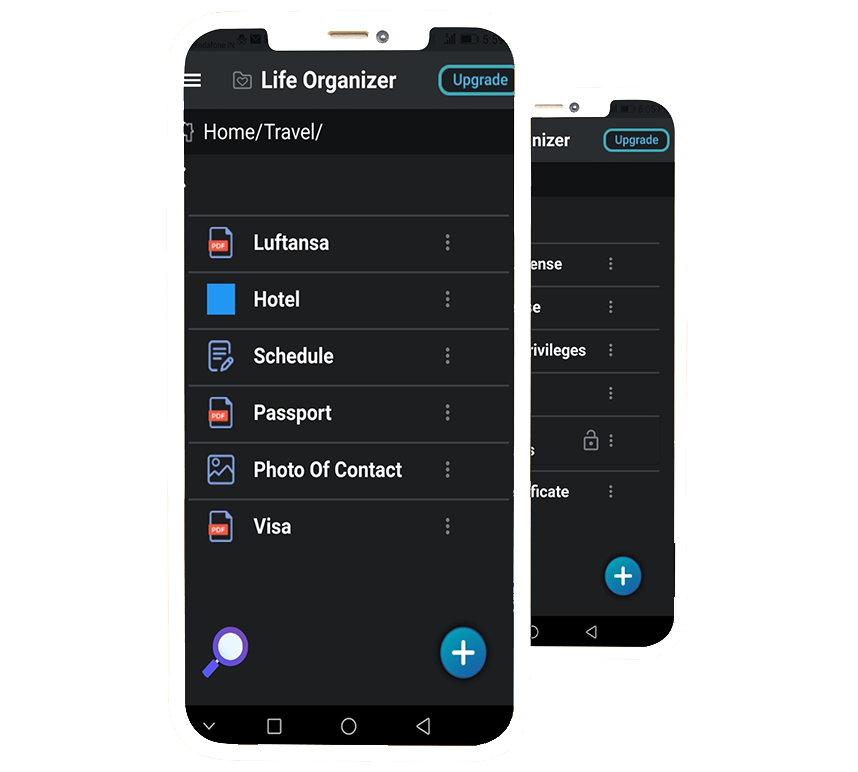 This is the core principle of lifeorganizer. Allow me to explain. How many documents are there right now in your life? Your school and college certificates. Your professional license or licenses. Your driving license. Your ongoing training certificates. Your income expense files. Your passport and other travel documents, including your vaccination certificate. How many times have you had to search in your bag, your phone, in your laptop, or whereever else you put these things? Each time you have to dig up these documents and put all the needed documents in one place, it takes at least three and half hours of work on an average. And this does not even count the stress and aggravation. What if you could find all your documents neatly categorized, all ready to find, ready to send to someone, ready to print out, or just ready to show to someone, such as at an airport? The Life Organizer App does just that!